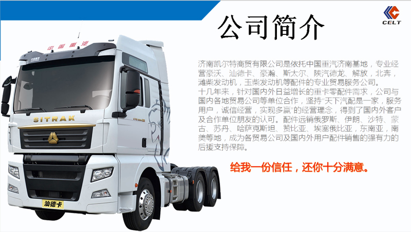 1.凯尔特有自己的品牌产品了,橡胶支座,油封,推力杆,离合器片,制动鼓,轮毂等登录市场,与你同行!欢迎咨询,专线:13386406022 2.济南凯尔特携手中原内配集团公司,中原河阳牌原厂配套缸套!18615541033李经理 3.济南凯尔特商贸公司与浙江海盐汽车配件制造有限公司合作,海盐秦燕系列配件,配件正宗,价格帅气,详情咨询电话:0531-68820881 13287751033 钱经理 4,潍柴专卖,潍柴正品配件,为你护航。咨询热线:13256135708 宗经理
