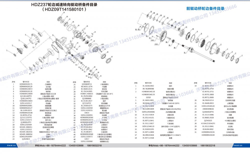 HDZ237轮边减速转向驱动桥备件目录